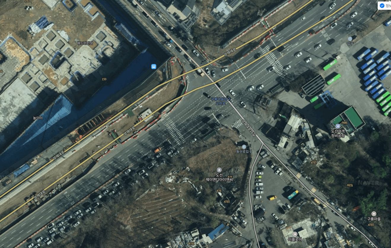 아래 그림은 차선 변경(2023년 4월 현재) 전의 항공사진입니다.