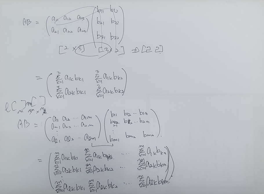 a_1k b_k1 : 의 각 항목도 common인 k는 붙여있다.(없어진 정보).. 그리고 a는 행의 정보.인덱스. b는 열의 정보 인덱스를 가진다...