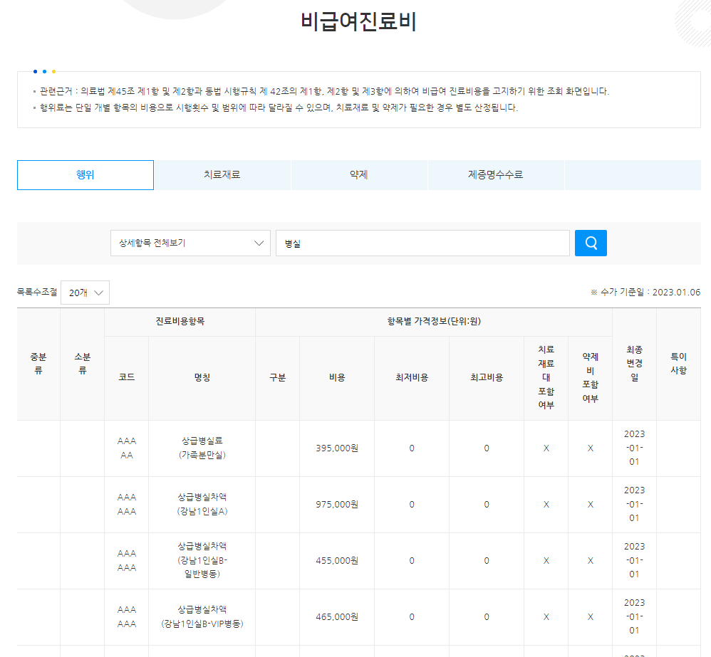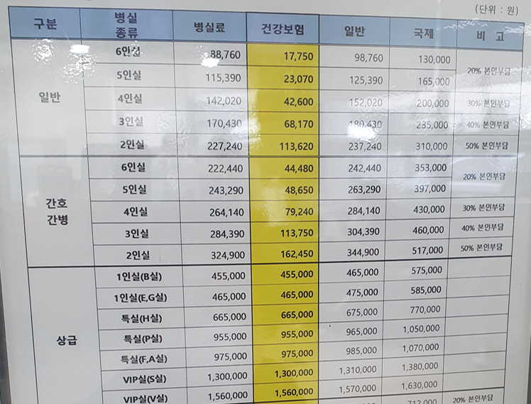 * 는 법정본인부담금 + 전액본인부담금 + 비급여....