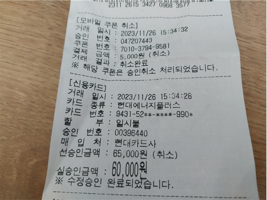 - 근데, 신용카드가 60,000원이다.