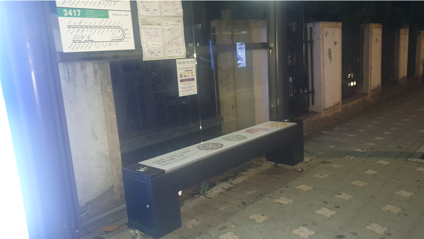 송파구에 있는 버스 승강장의 온돌의자에 무선 충전 장치가 있어서 소개합니다.
