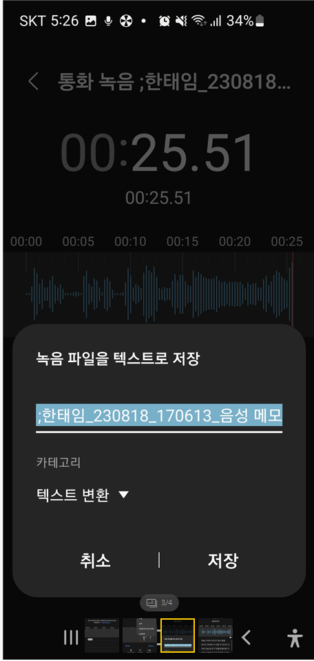 전화 통화 내용은 약간의 음질 등으로 잘 못 알아 들었을 때 요긴하게 사용될 수 있습니다.