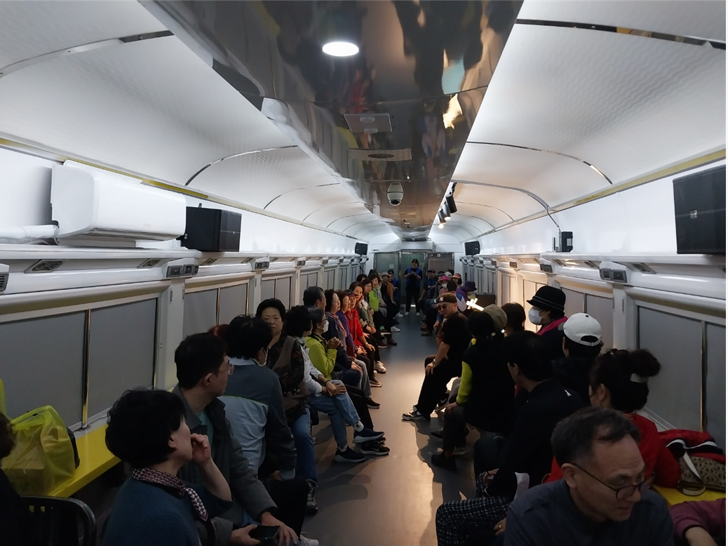 이때 이용하는 열차는 일반적으로 편성된 열차가 아닌 특성 편성된 '에코 열차'를 이용하게 됩니다. 여행업체 '여행공방'을 통해 문의해 보니, 열차 운행 자체를 특별히 편성 즉 전세를 낸다고 합니다. 열차 내의 운영도 여행사에 담당하는 것으로 여겨졌습니다. 안내방송, 화장실 운영 등을 포함해서요.