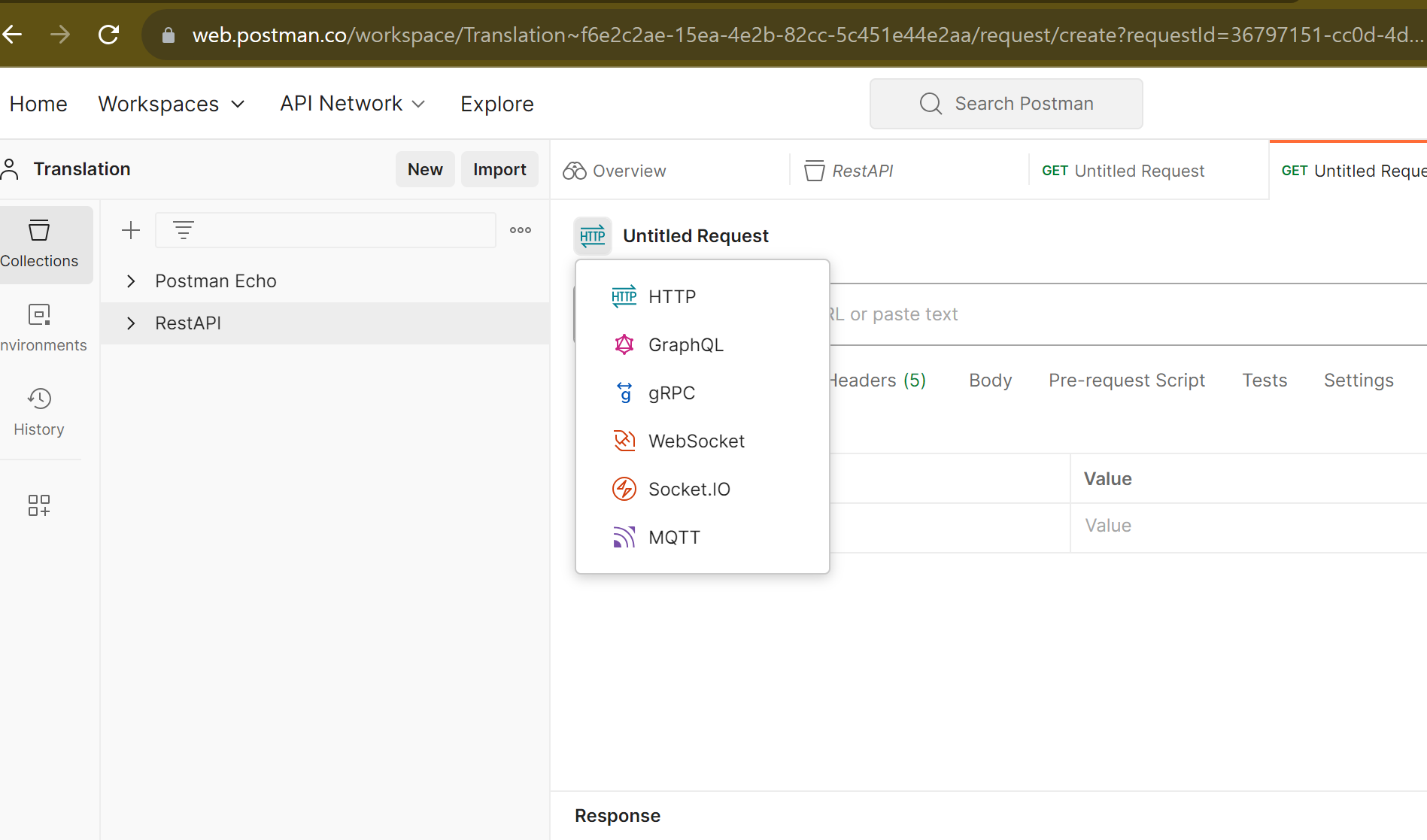 Postman에서 특정 호출을 등록할 때, 종류를 선택하는 화면은 아래와 같습니다.