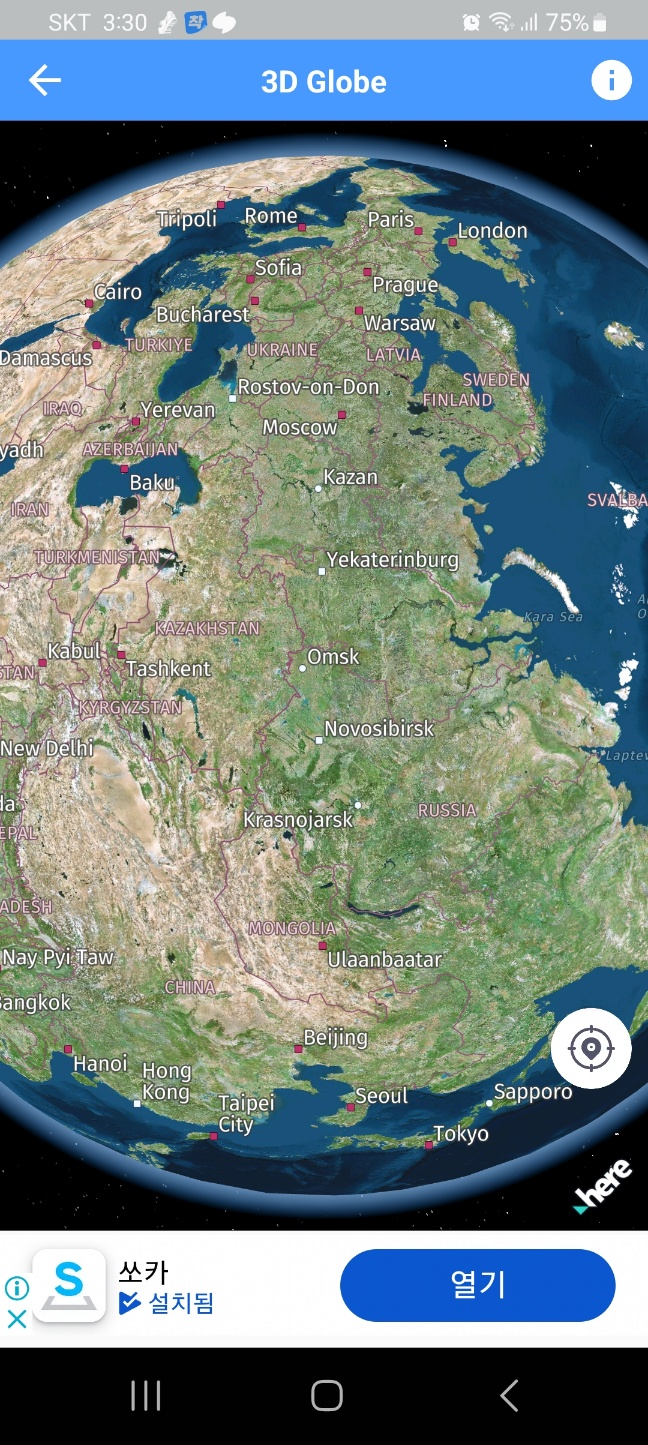 3D지도( 또는 지구본)을 통해 확인해 보니, 위 항로가 직선 항로입니다.