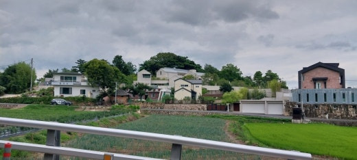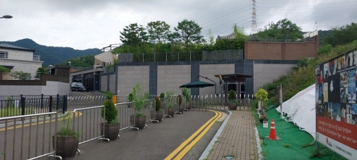 평산 마을입니다. 가운데 건물과 그 뒷공간입니다. 뒷공간은 앞의 3채의 폭이기 때문에 상당히 넓을 것입니다. 유튜버 들은 이제 보이지 않더군요.
