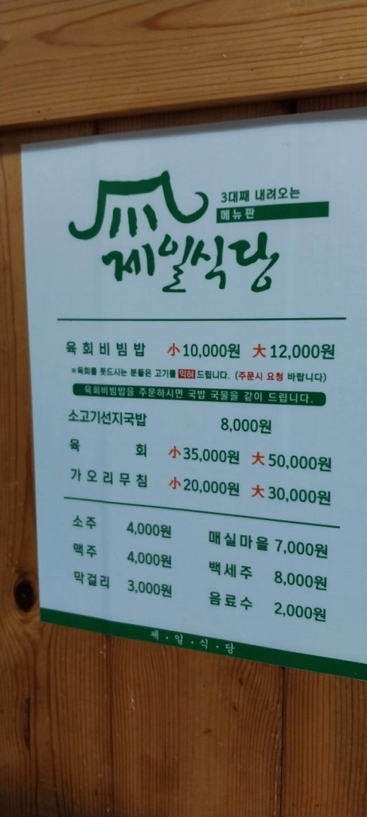맛은 제사밥과 육회 입니다. 제사밥의 나물에 육회에 얹어집니다.