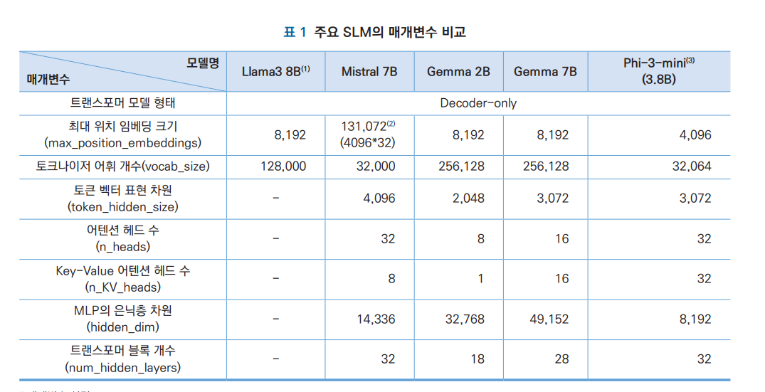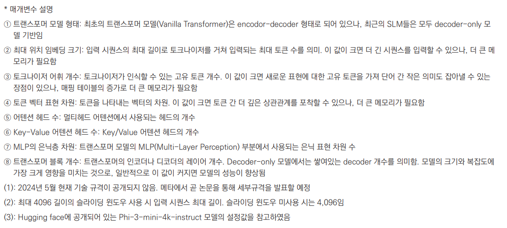 sLM ( small Language Model) : ~80억(8B) 개의 파라미터 정도.