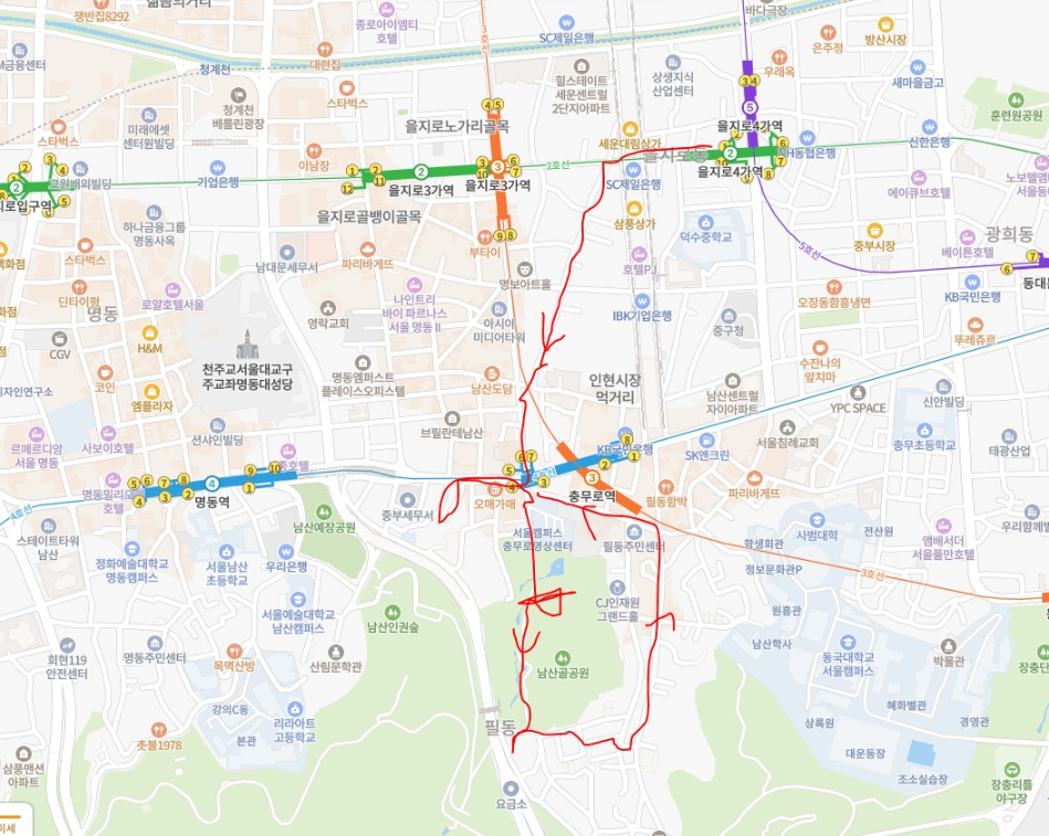 저는 필동을 가회동이나 부암동의 이미지로 생각했는데, 직접 돌아보니 많이 다르더군요.