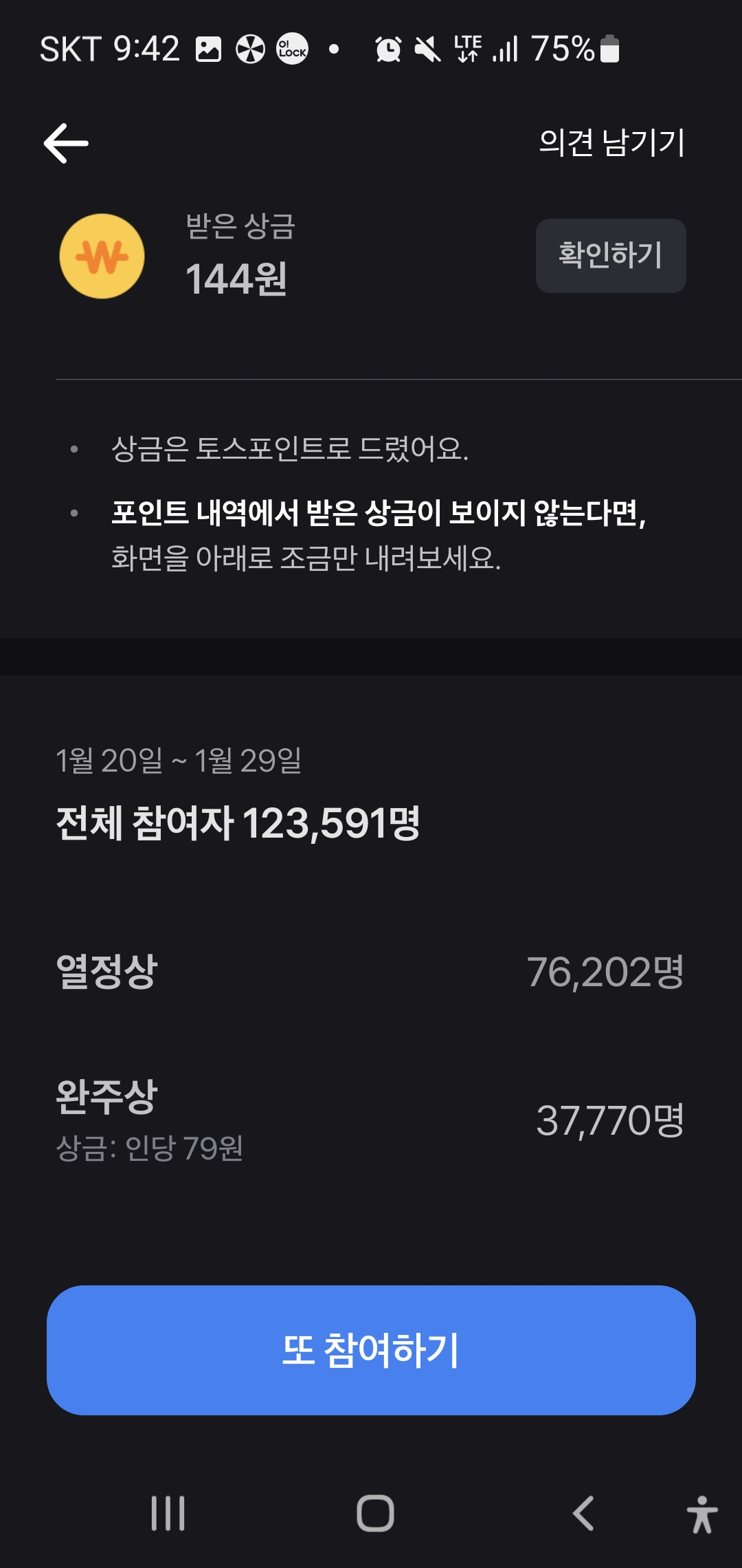 개인적으로 지난 대회보다 배당(?)이 작습니다. 설날 명절 때보다 완주하신 분이 많고, 열정상은 랜덤인데, 복불복으로 나아지지 않았습니다.