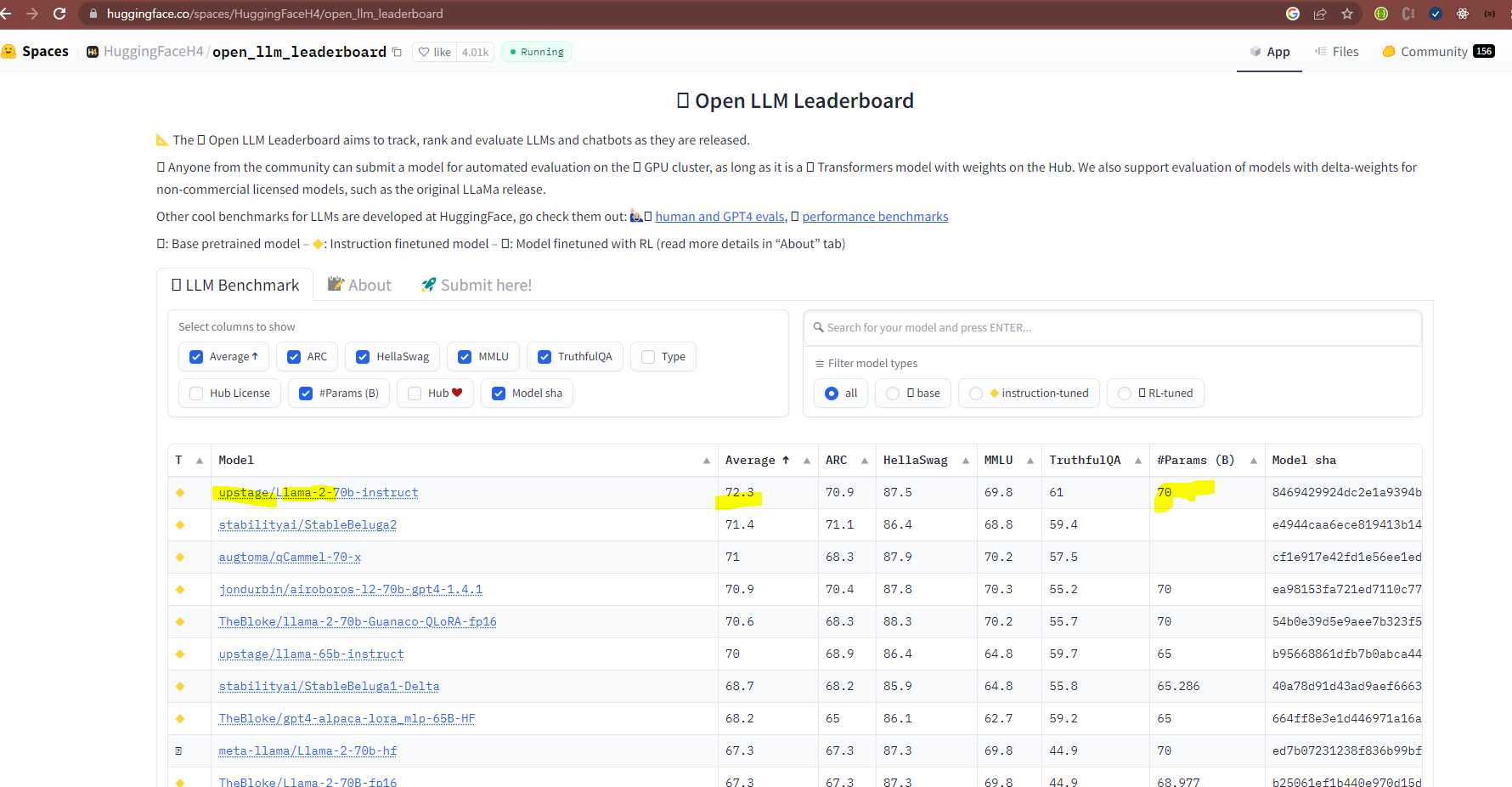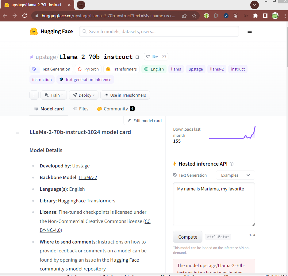 조금 더 자세히 들여다보면, ( https://huggingface.co/upstage/Llama-2-70b-instruct )