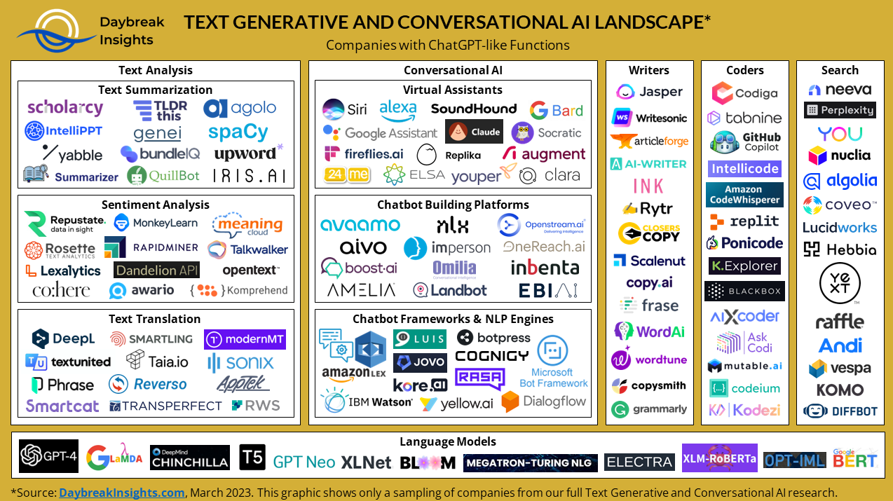 텍스트 생성 및 챗봇AI 지형도... 10개 커테고리서 700여 기업 경쟁..