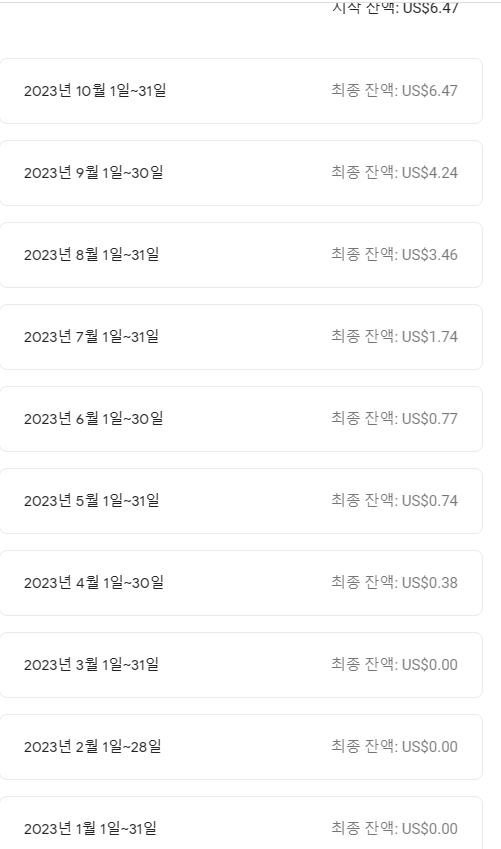 10월달에는 1.8달러, 9월달에는 0.8달러, 8월달에는 1.7달러, 7월달에는 1달러....