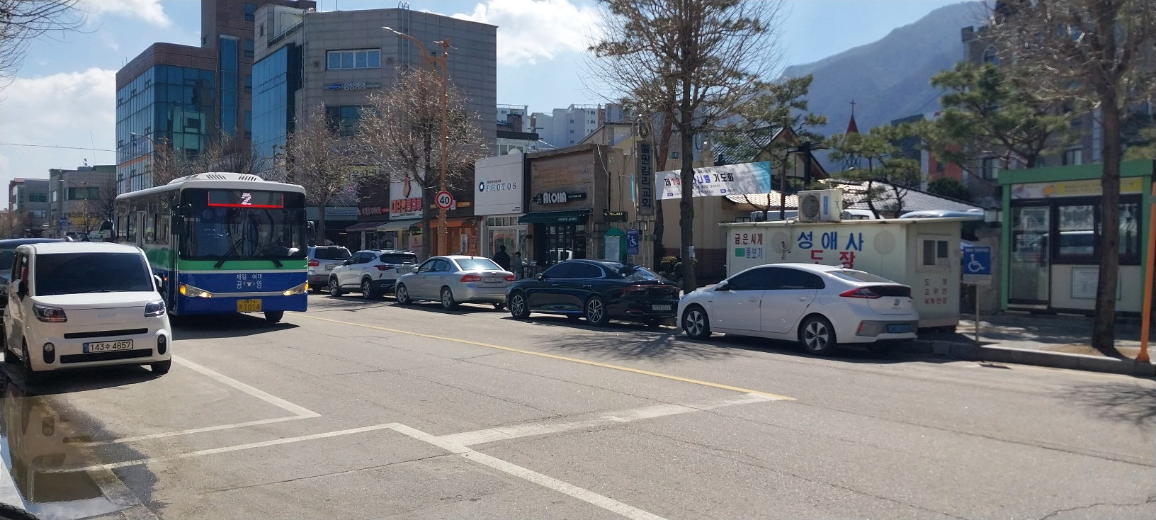 버스 승강장에는 도착 시간 안내판이 없습니다.^^