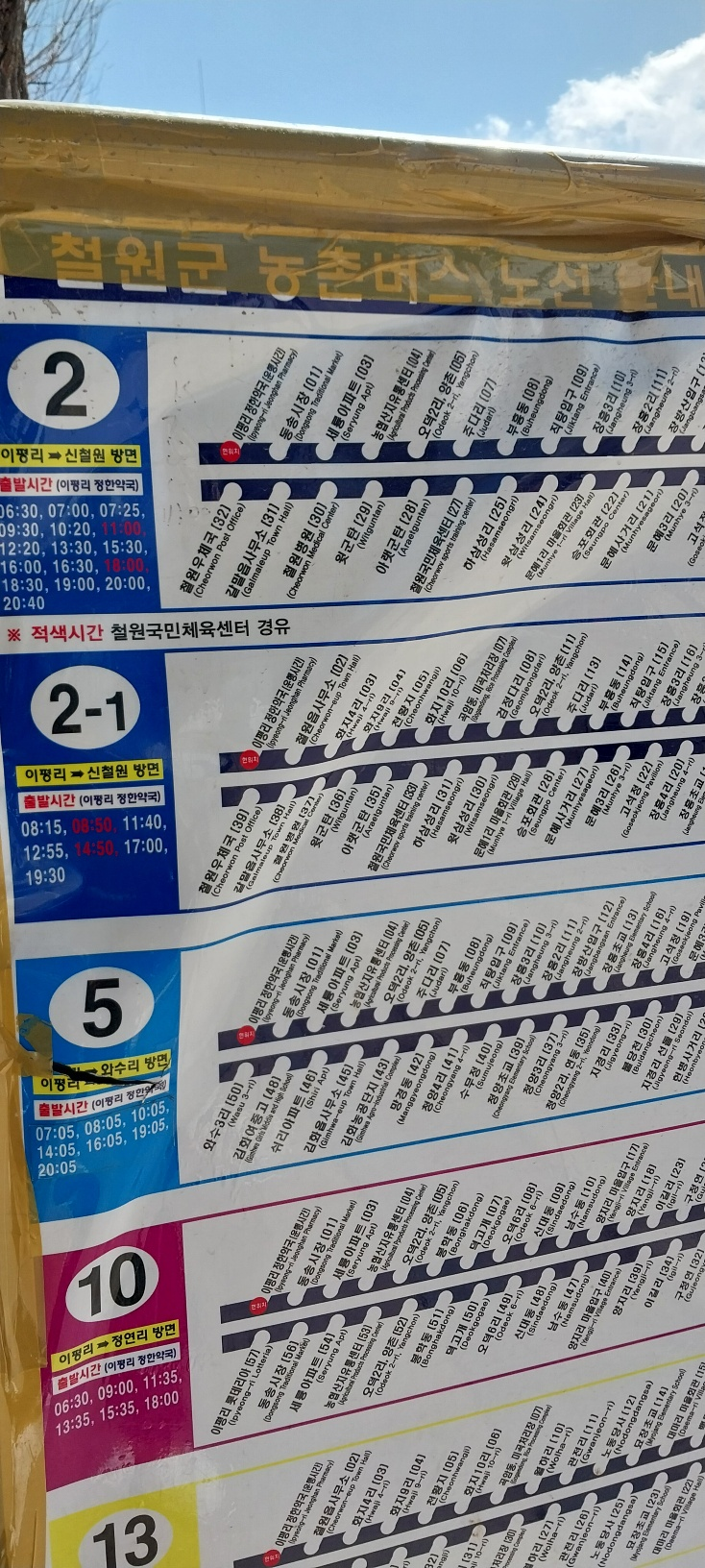 2. 동송터미널 건너->장흥3리 ( 논어촌버스 2번 버스)