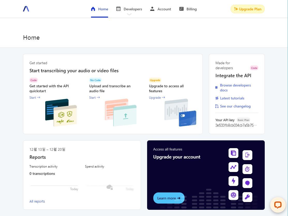 AssmblyAI의 API 기술문서는 https://docs.assemblyai.com/ 에 원문(영어)이 있다.