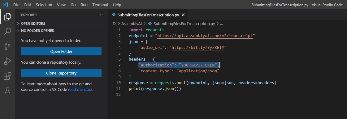 endpoint = "https://api.assemblyai.com/v2/transcript"