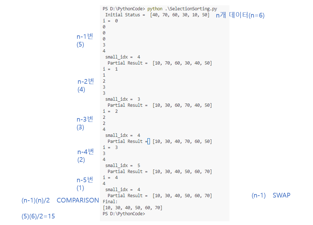 PS D:\PythonCode> python .\SelectionSorting.py